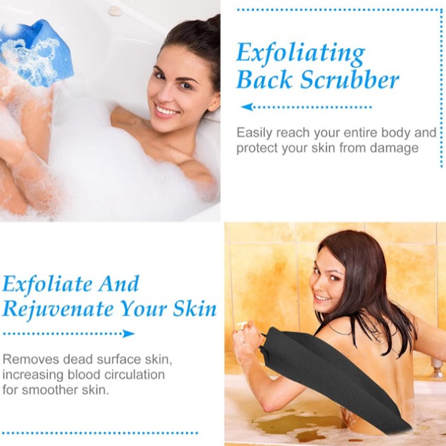 Versatile Exfoliating Back Scrub: combined with handles at both ends, the exfoliating body scrubber can reach your back with ease, in addition, this washcloth for back is also suitable for most inaccessible shoulders, back, and lower back areas, helping rinse dirty easily