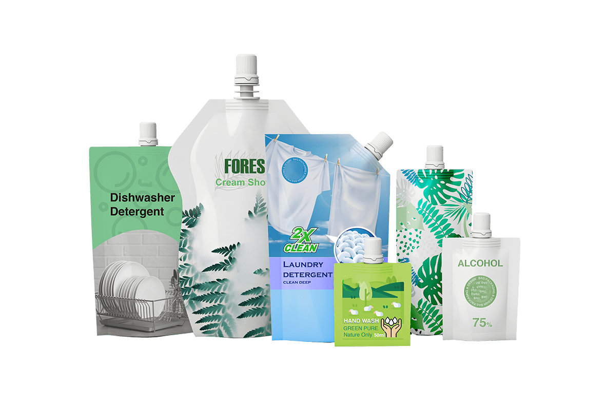 The self-supporting spout bag is more convenient to pour or absorb the contents, and can be re-closed and re-opened at the same time, which can be considered as the combination of the self-supporting bag and the ordinary bottle mouth. This kind of stand-up pouch is generally used in the packaging of daily necessities, and is used to contain liquid, colloidal and semi-solid products such as beverages, shower gels, shampoos, ketchup, edible oils, jelly ect.