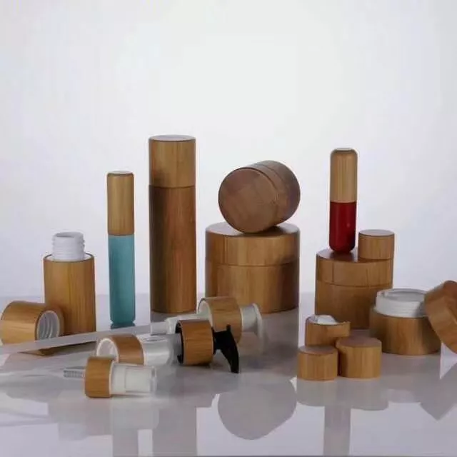 The application of bamboo packaging material in cosmetic packaging industry is mainly used in pump head shell, bamboo eye shadow box, bamboo lip color tube, bamboo lipstick tube, bamboo pressed powder box, bamboo eyelash tube, bamboo cream bottle, bamboo bath series and so on.