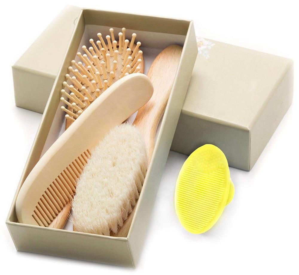 Wooden Hair Brush Bottle Brush and Comb Set