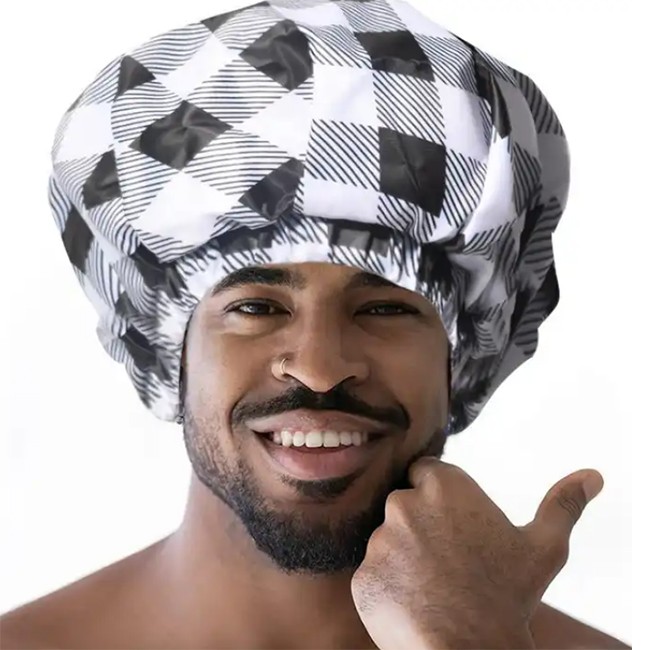 Designed for Men -- This shower cap is specially designed for men. You can use it in the shower and you can shower easily and protect your hair from getting wet.