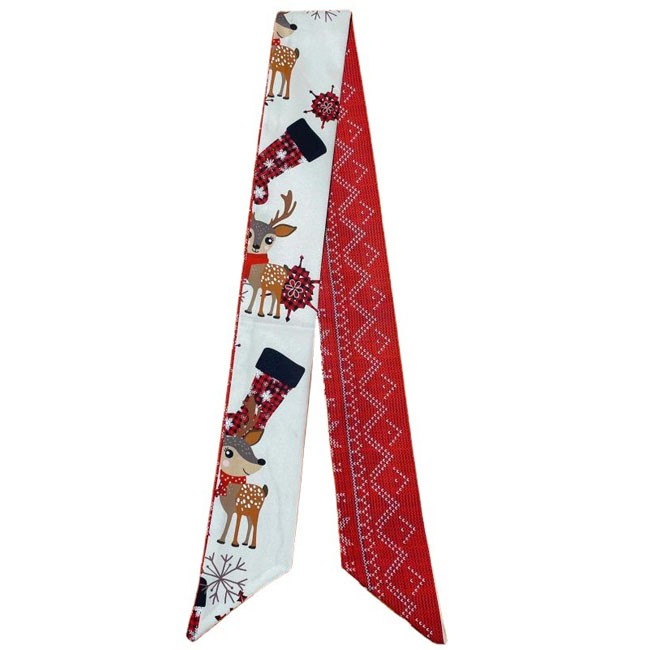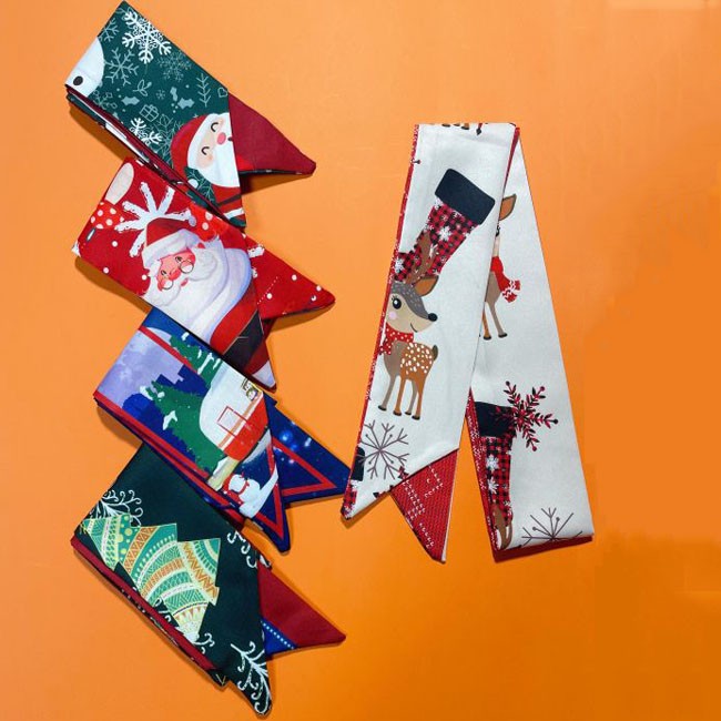 Christmas Theme Scarf for Women Handle Ribbon Satin Head Handbag Scarf