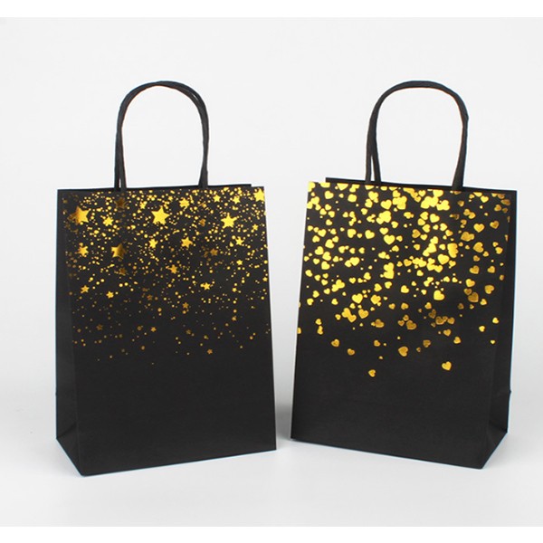 Black Gift Bags with Handles and Gold Foil Heart Star