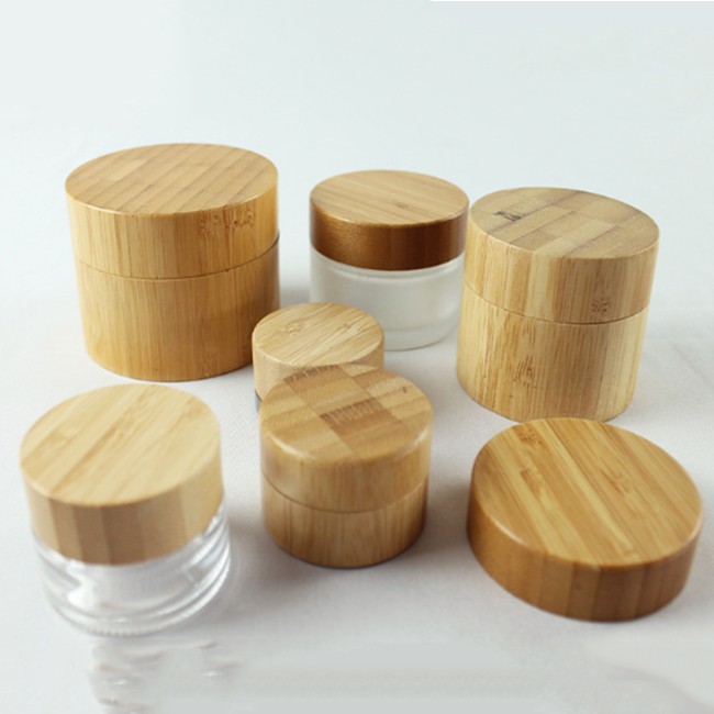 Cosmetic Glass Plastic Bamboo Jar With Wooden Bamboo Lid
