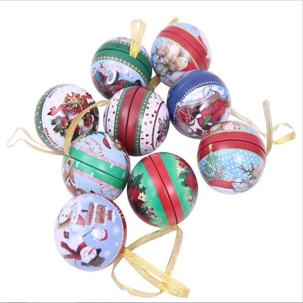 Christmas Tree Ornaments Candy Tin Ball Boxes