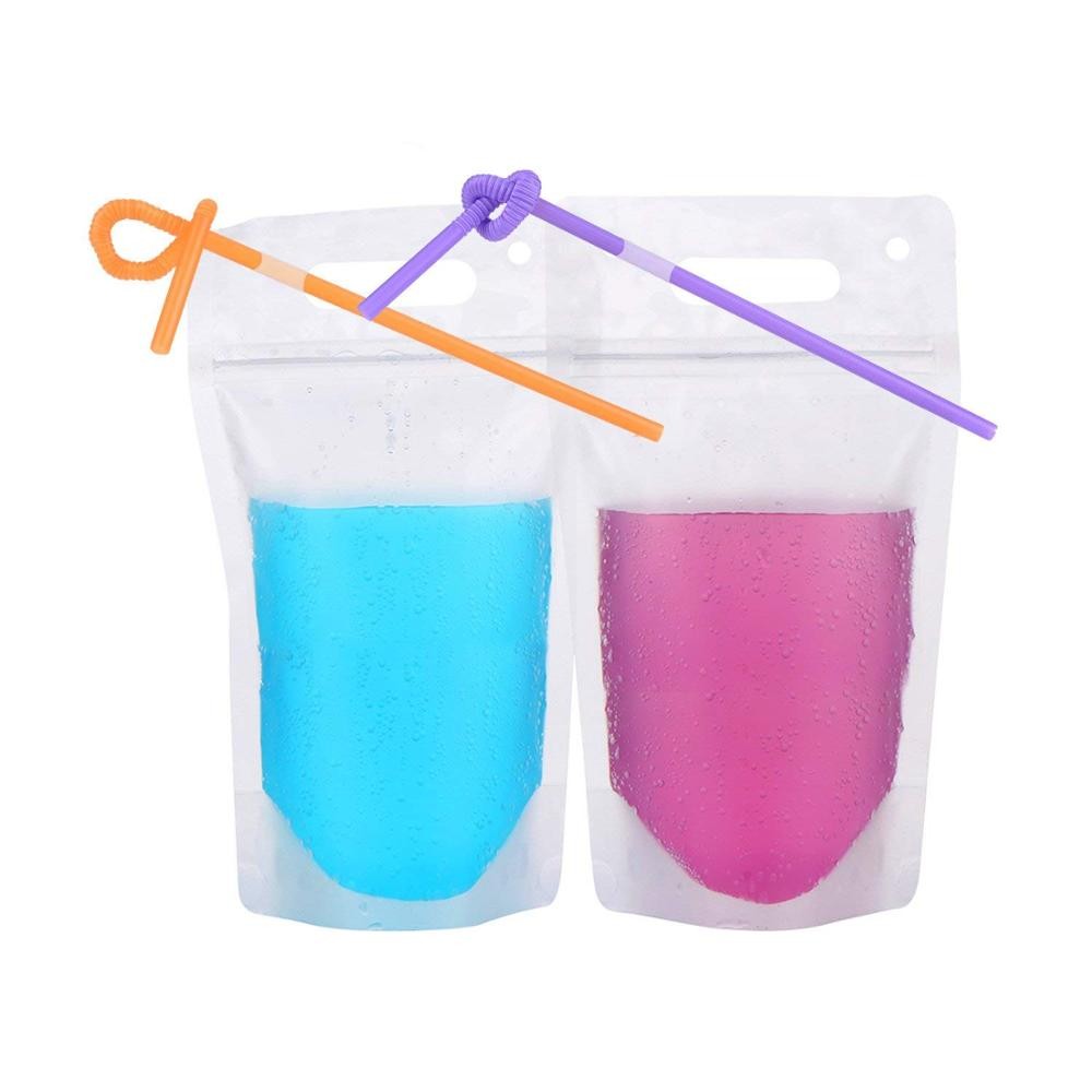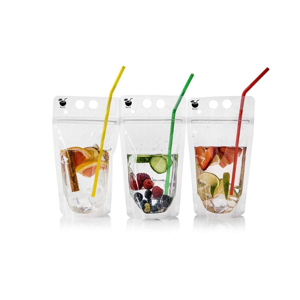 Portable beverage drinking bags zip lock stand up pouch.