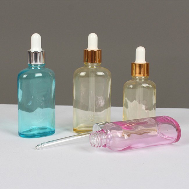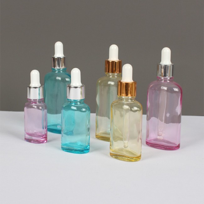 Colorful Flat Glass Oil Dropper Bottle