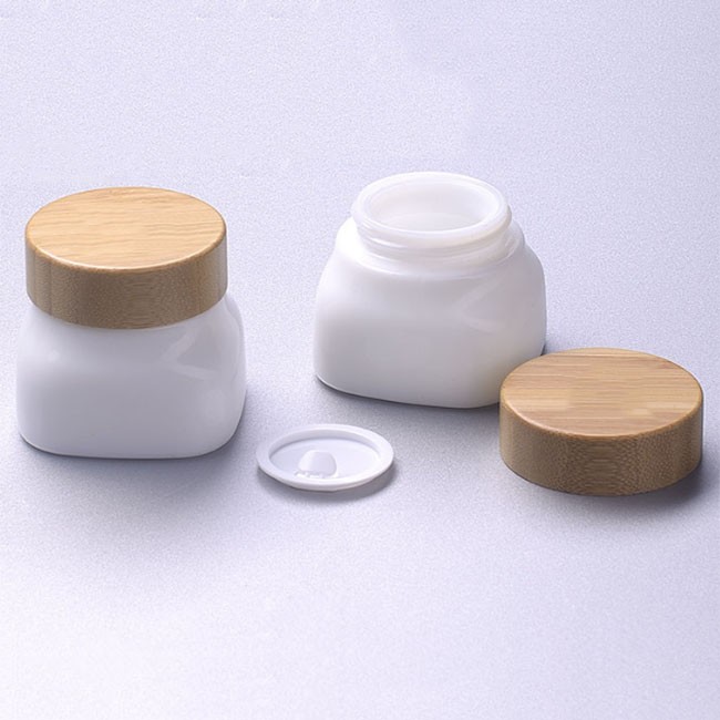 White Porcelain Cosmetics Glass Bottle With Bamboo Lid