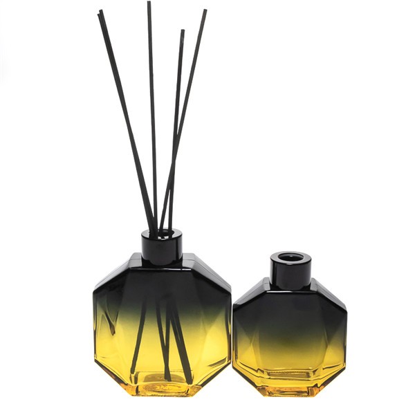 Unique Hexagonal Shape Colorful Aroma Glass Diffuser Bottle With Sticks