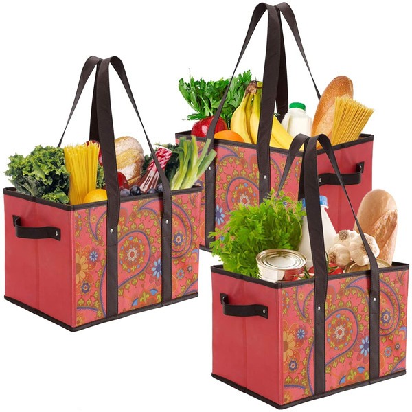 APPLICATION : From food, produce, flowers, toiletries, laundries, books, toys, school supplies, cleaning supplies and more, this bags can handle almost any job. Ideal for grocery shopping, farmers markets, picnics, camping, boating, trips or serves as a trunk organizer or an elegant storage bins at home, office and school.