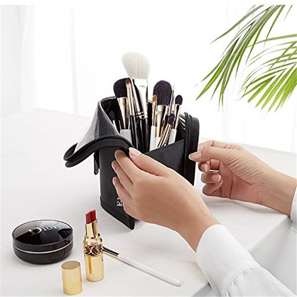 - It is not only a brush bag, but also a brush holder. Fold out the transparent section of the brush bag, you can get a brush holder instantly and get the item you want quickly. Pull up zipper, it can be waterproof and dust-free. The extended zipper tail can be used as easy carrying.